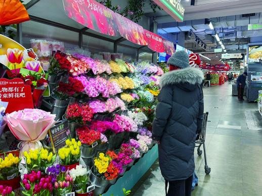 在盒马鲜生华创店股民钱包,一名消费者正在挑选年宵花。